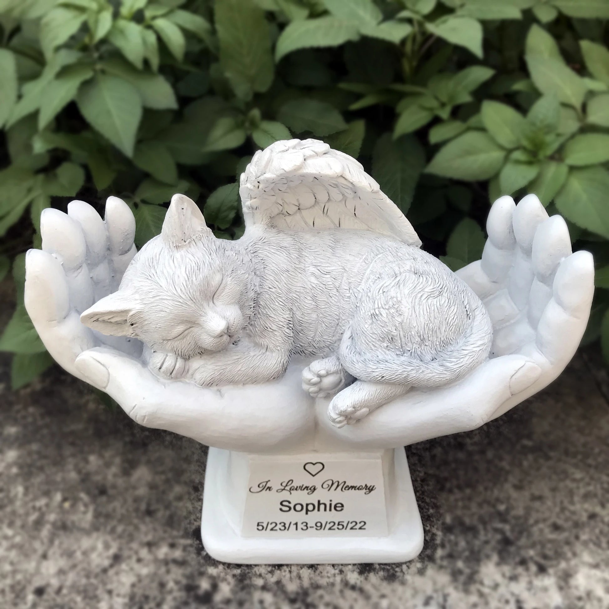 Personalized Cat Pet Grave Markers Memorial Angel Statue Stone with in God's Hands, Cat Pet Headstone Garden Stone