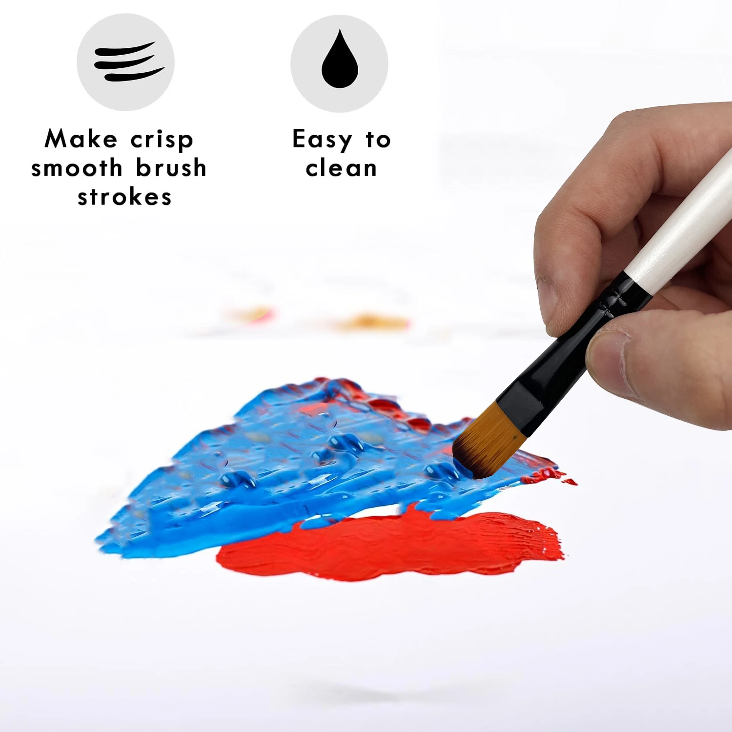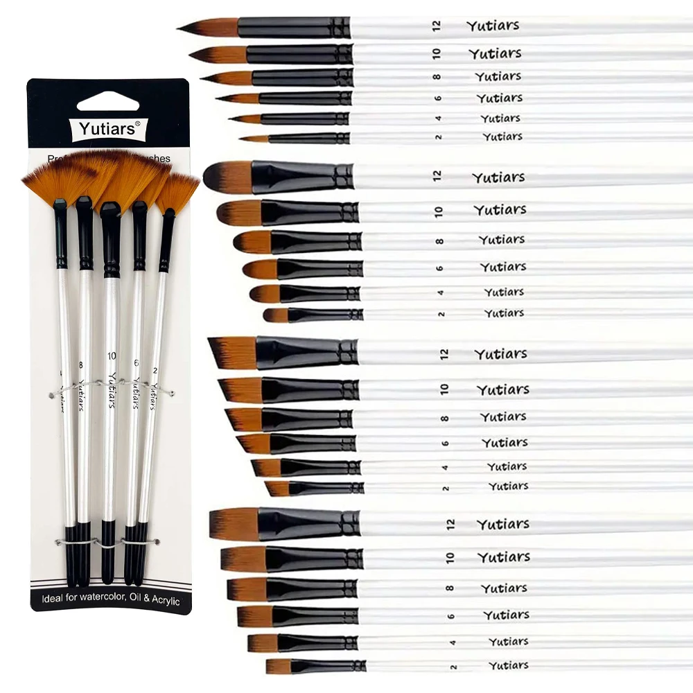 29pcs Nylon Brush Set - Round, Filbert, Flat, Fan, Angular & Detail Brushes for Acrylic, Oil & Watercolor Painting
