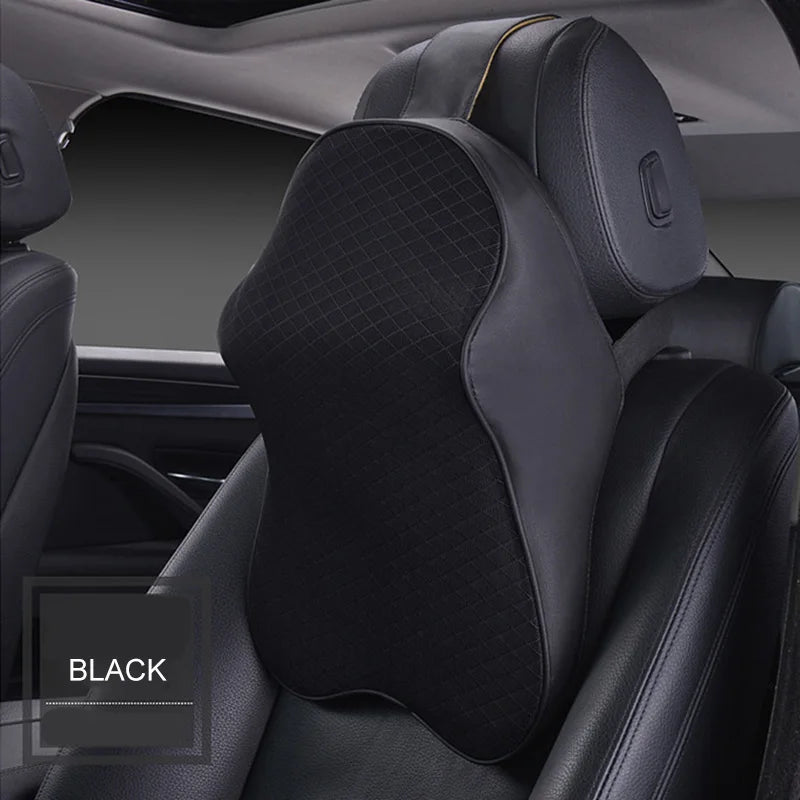Premium 3D Car Headrest Pillow - Leather & Ice Silk Neck Support Cushion