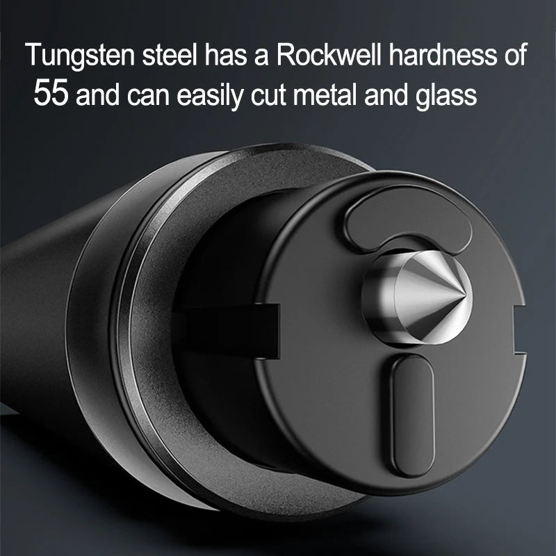 - Hardened steel tip effortlessly shatters car windows in emergencies