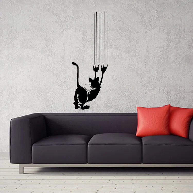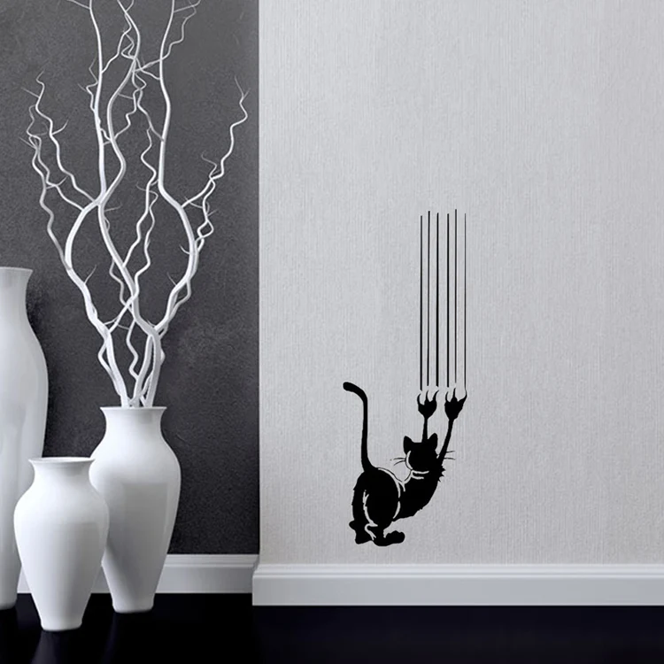 Cute Cat Wall Sticker Door/Wall Home Decoration Living Room Background Mural Art Decals Removable Kitty Funny Stickers