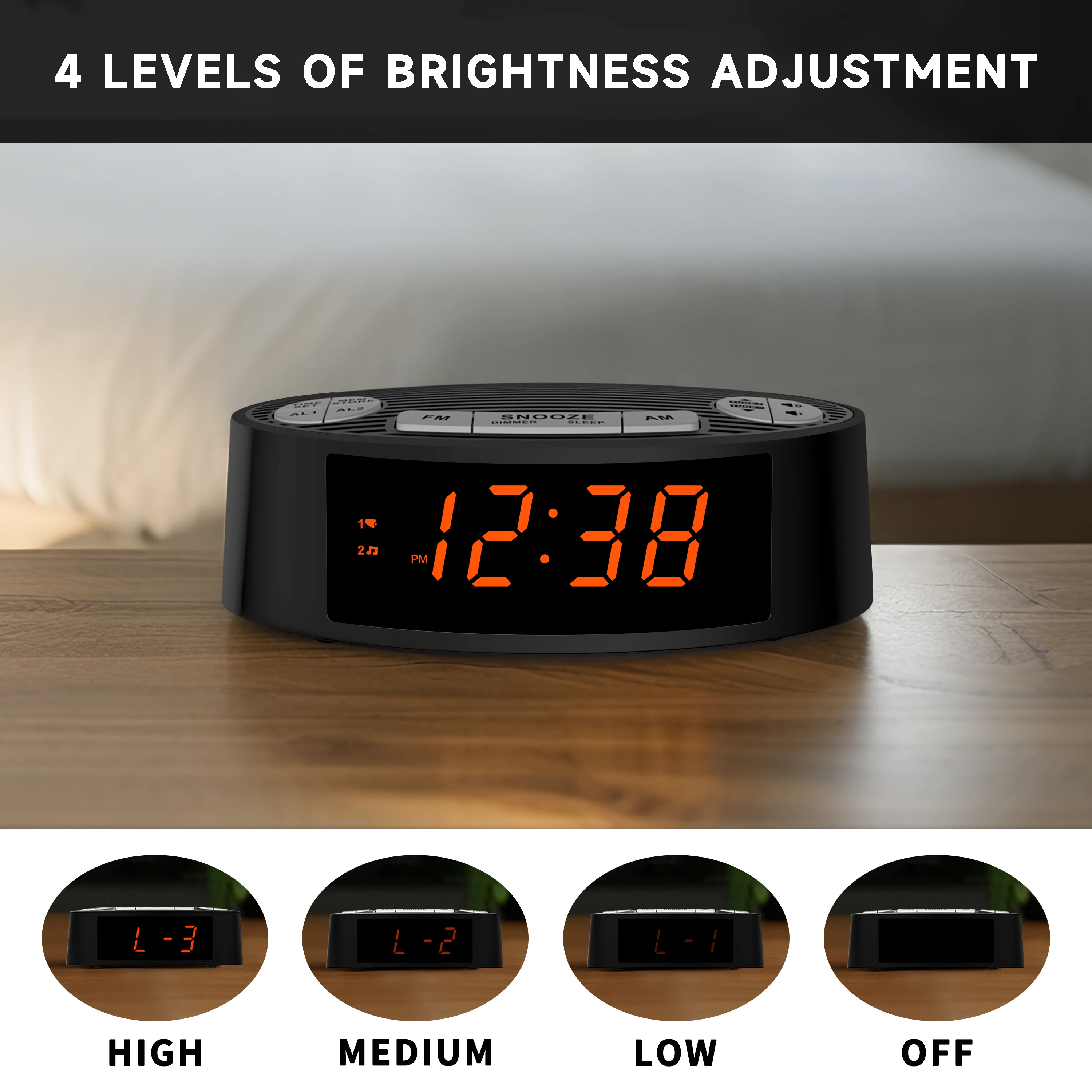 iTOMA CKS3301U FM Alarm Clock Radio Dual Alarm Sleep Timer Snooze Orange LED Display 4-Level Dimming Option