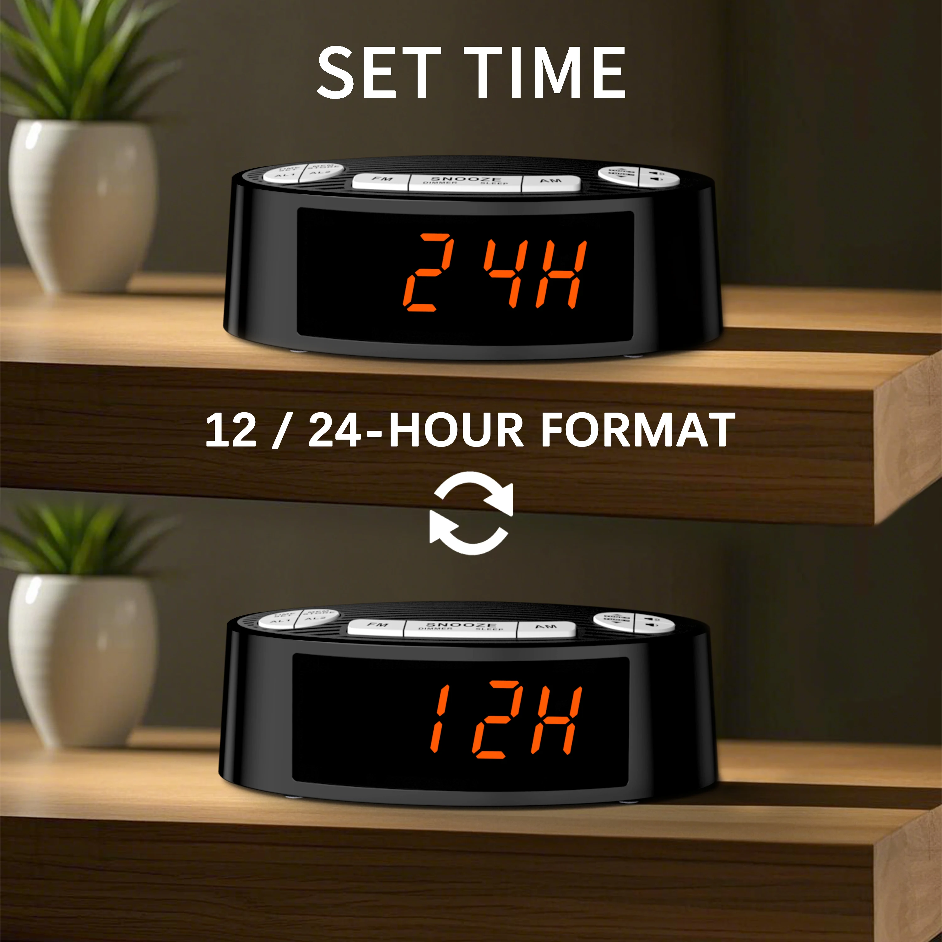 Features an AM/FM radio, making it a versatile alarm clock radio for your bedroom, living room, or office.