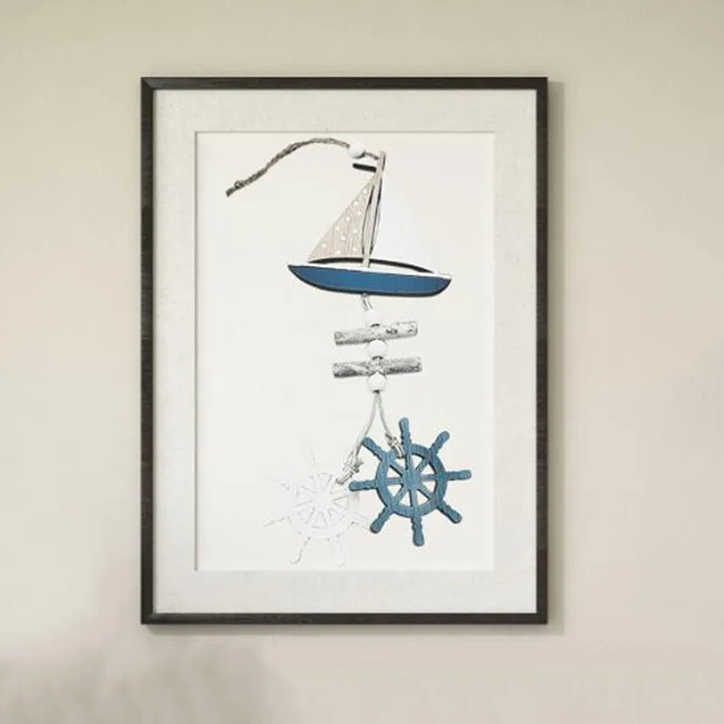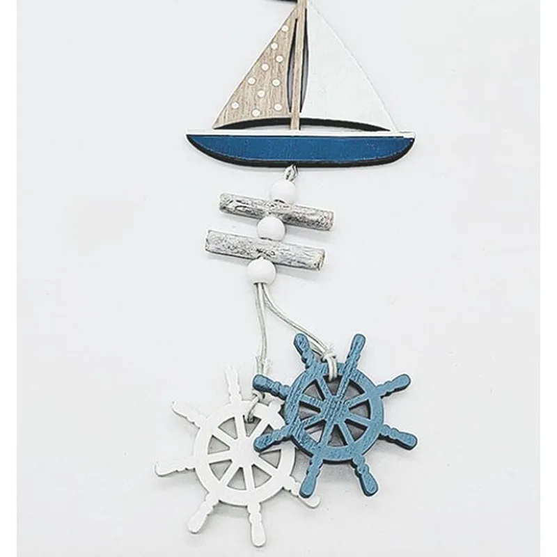 Marine Style Wooden Pendant Ocean Wind Crafts Small Fish Boat Innovative Accessory Wall Hanging Decoration Pendant Home Decor
