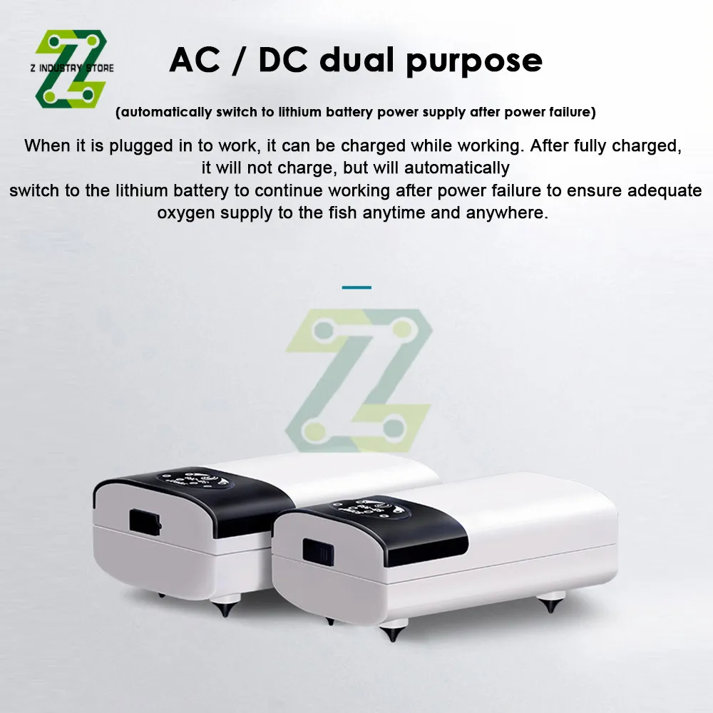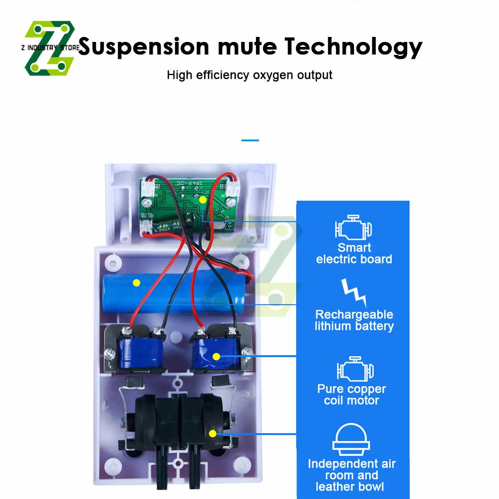 Oxygen Air Pump Air Compressor USB Charging 2600mAh Portable Exhaust Silent Oxygen Pump Aquarium Oxygen Pump