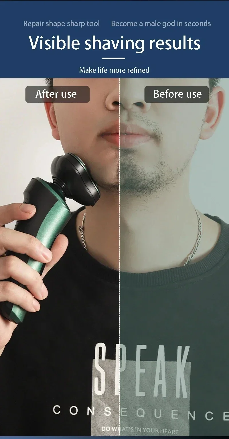 4. One set unlocks 4 major grooming functions: floating beard cleaning, three-head rotating floating shaving; trimming sideburns, various styles can be controlled at any time; deep cleansing, deep cleansing with a cleansing brush; trimming nose hair, only removing hair without hurting the nasal cavity.