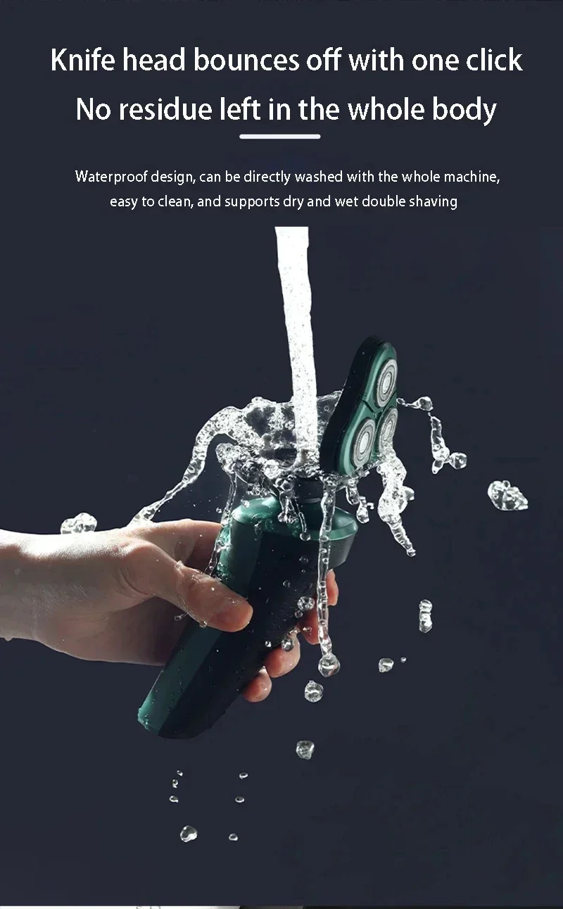 5. Waterproof design: The blade head pops open with one button, and the whole machine can be directly rinsed, which is convenient to clean and supports dry and wet dual shaving.